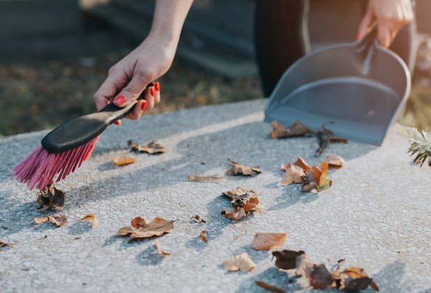 nettoyage complet de la sépulture et de ses ornements à l'aide de produits naturels.